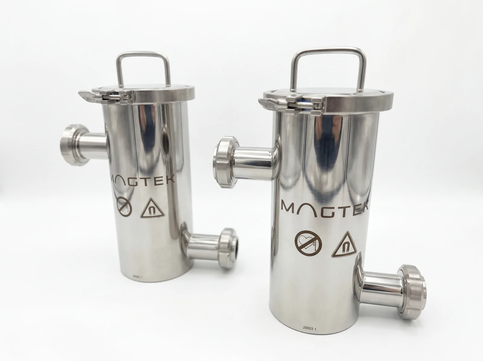 A Armadilha Magnética Sanitária elimina contaminantes ferrosos sem gerar queda excessiva de pressão, sem necessidade de consumíveis e sem comprometer a integridade do produto. Além disso, permite desmontagem rápida para limpeza e higienização.