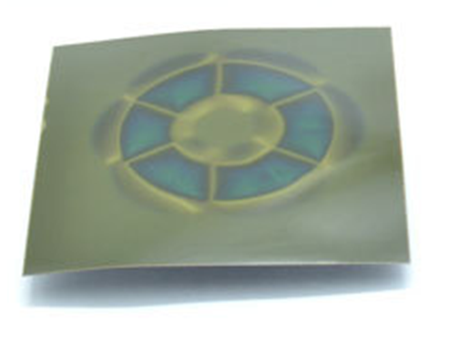 Filme plástico flexível com partículas magnéticas micro encapsuladas com uma “gelatina”, destinado à visualização de campos magnéticos contínuos (DC) à partir de 30 Gauss.